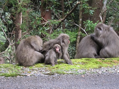 山道をぐんぐん進んでいると、おさるさん達発見。