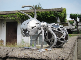 ぽてぽてと歩いていると、第一村人ならぬ、第一オブジェ発見!