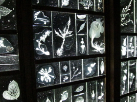 採集した植物をガラス板に挟んで釜で焼成しているそうです。