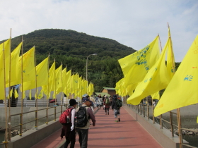 港に着くと、黄色の旗がお出迎え。何でも、多度津町の子ども達が作成したそうです。