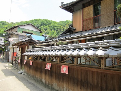 古い家屋の壁に目印のスイスの国旗が飾ってありましたよ。