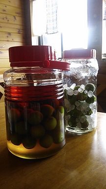 日記 2014/06/01 6月ですね! 6月に入りましたね。 今日も本当に暑いです!! 仕事用の半袖のシャツを出して、今まで使っていた冬用のスニーカーを洗って、 夏用の新しいの出して。 ちょっとバタバタしておりました。 そして、今日、待望の梅酒&梅シロップを作ってみました! (手前が梅酒で、奥が梅シロップです) 梅酒は、友人から果実酒用ブランデー+はちみつで作る梅酒が美味しいよと教えてもらったので作ってみました。 梅シロップは、梅が余ったのでついでに作成。 氷砂糖がちと足りなくて、後で追加はしましたが。 梅ももらいものだったのでちょっと傷んでいるところがあって捨てるのも多かったのですが、 なんとか作ることができました。 梅のヘソを取ったり、あく抜きで3時間ほど水につけたり。 瓶を熱湯消毒&アルコール殺菌したり……。 手間はかかったけど、楽しかったな。 梅酒は3ヶ月程度待たなければいけないらしくて、欲しい夏に飲めないのがちと残念ですが。 9月頃美味しい梅酒が飲めると良いなあと思ってます。 毎日、(瓶を)まわしまわししなくっちゃ!(笑) PR